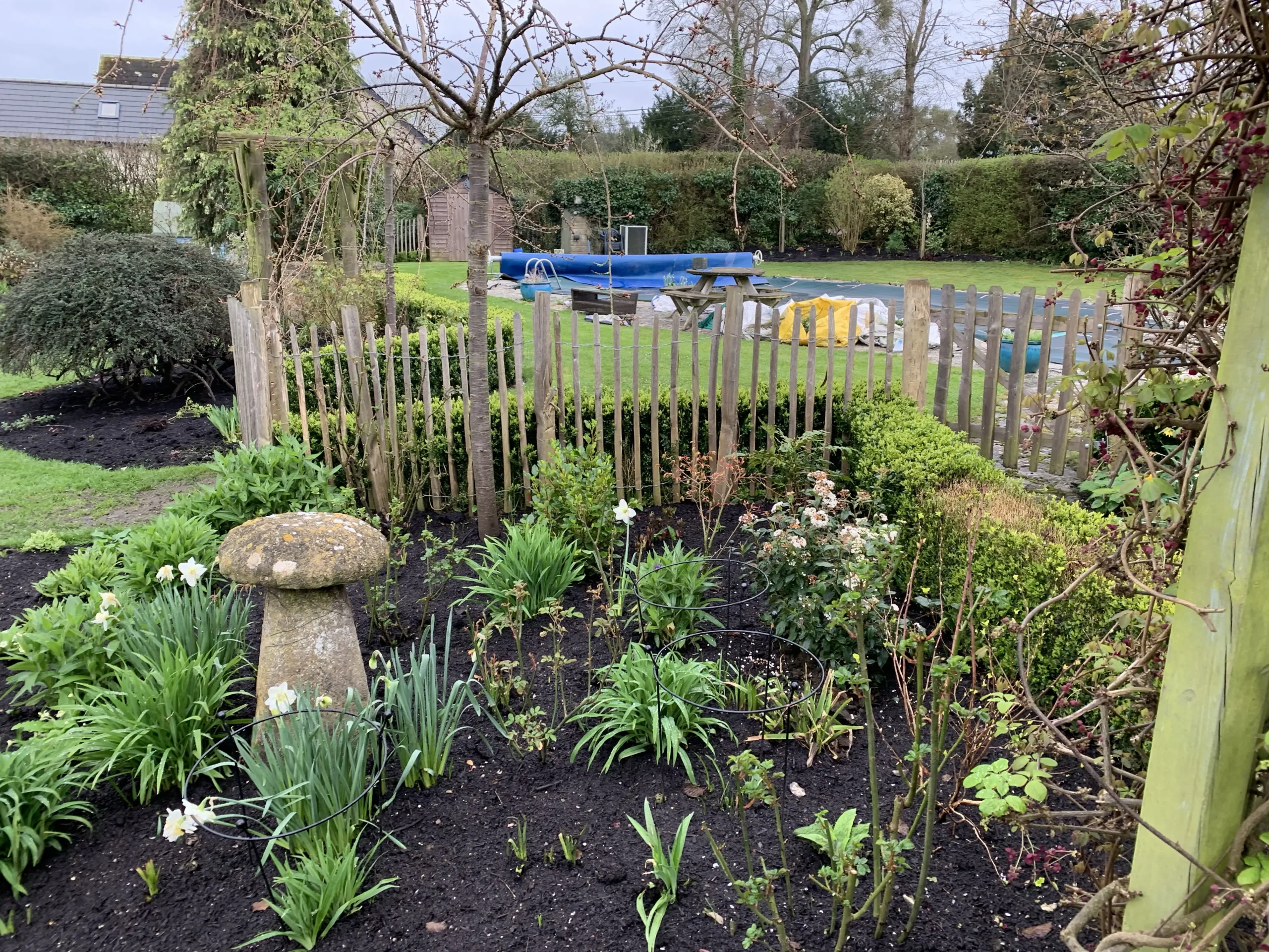 The completed flower garden bursts with colour and variety. Lush blooms, carefully arranged borders, and flowing pathways create a vibrant, inviting landscape. The garden now offers both aesthetic appeal and a serene environment for visitors to enjoy, transforming the previously empty space into a lively and captivating outdoor retreat.